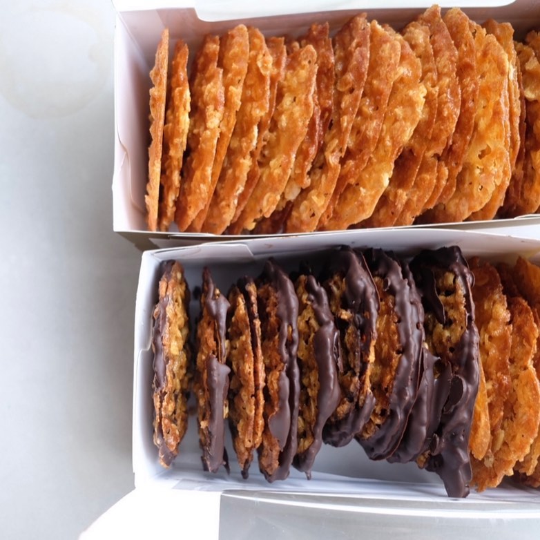 Desserts come in all shapes and sizes, sometimes you need something chunky and filling but there are also days you just want light thin snack. Manuela Vargas answers this decadent dilemma with the classic answer, “Why not both?” On thick side, you have their Chunky Chocolate Chip Cookies with flavors such us White Chocolate and Walnuts with Chocolate Chip. While on the thin side, you can order their Oatmeal Thins (FYI, pairs well with your morning coffee), which you can get plain or dark chocolate dipped.