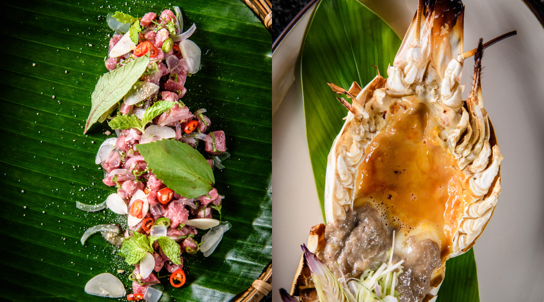 Raw wagyu beef salad, aloe vera, fresh herbs from the garden