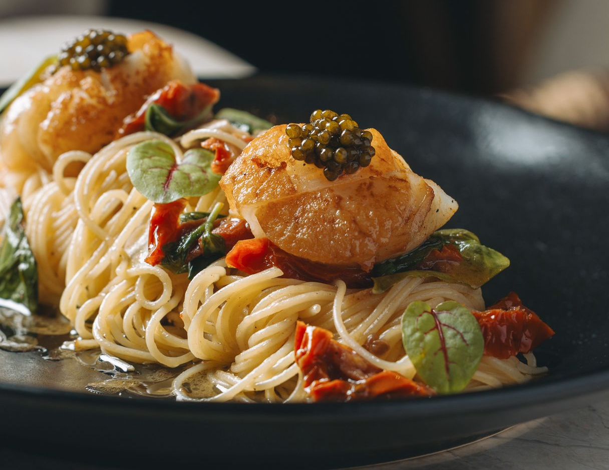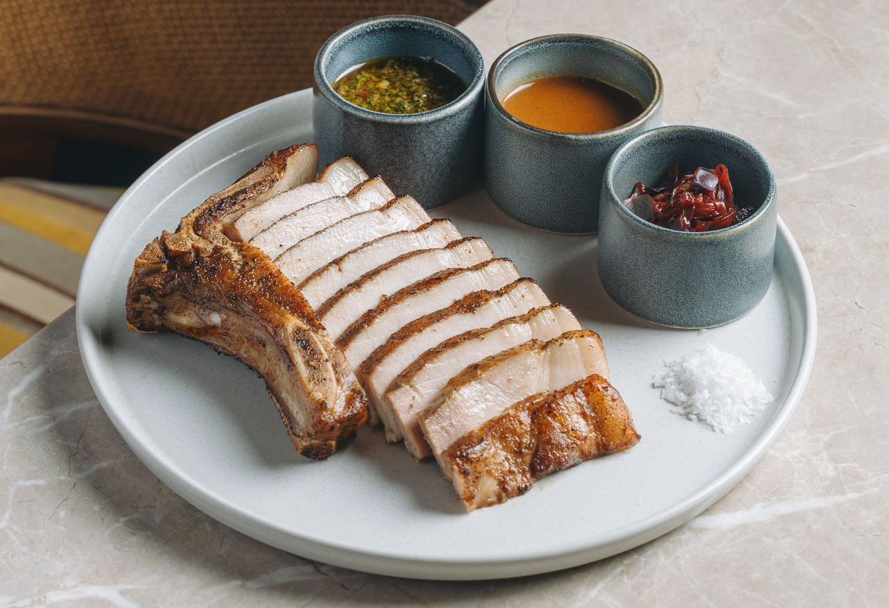 The menu at The Balmori pop-up features two types of à la carte offerings: the best of the signature debut menu and Balmori exclusive creations. The signature debut menu showcases timeless dishes like the 36-hour Kurobuta and the Uni & Blue Crab starter combination. For guests wanting something unique, the Balmori exclusives present special creations only available at this location, including the Sous Vide Smoked Pork Chop and Scallops and Osciètre Caviar Pasta.
