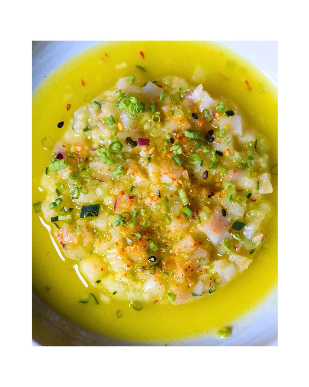 The croquettes were inspired by one of Chef Martin’s favorite combinations: pizza with a topping of kimchi (which, if you haven’t tried it yourself, I can assure you works surprisingly well thanks to the cheese and spice combination). The kinilaw is a childhood staple for him as well, one he grew up eating and loving—enough to want to include it in this personal menu.