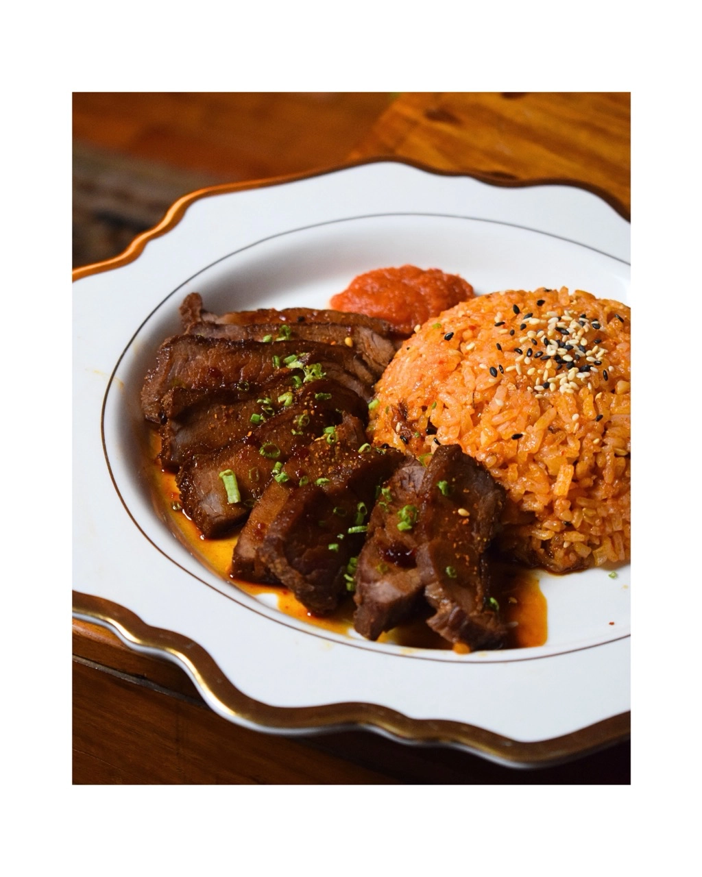Then came the mains, with a choice of Mediterranean Inasal with Crispy Potatoes (a spiced, Mediterranean take on the juicy inasal, paired with potatoes and lemon cucumber yogurt) or Gochu-Teriyaki Flank Steak and Kimchi Rice (a flavor punch of tender, four-hour sous vide steak marinated in gochujang teriyaki sauce and served with kimchi rice, which uses fresh kimchi instead of the more sour ones, which gave a light yet nuanced taste).