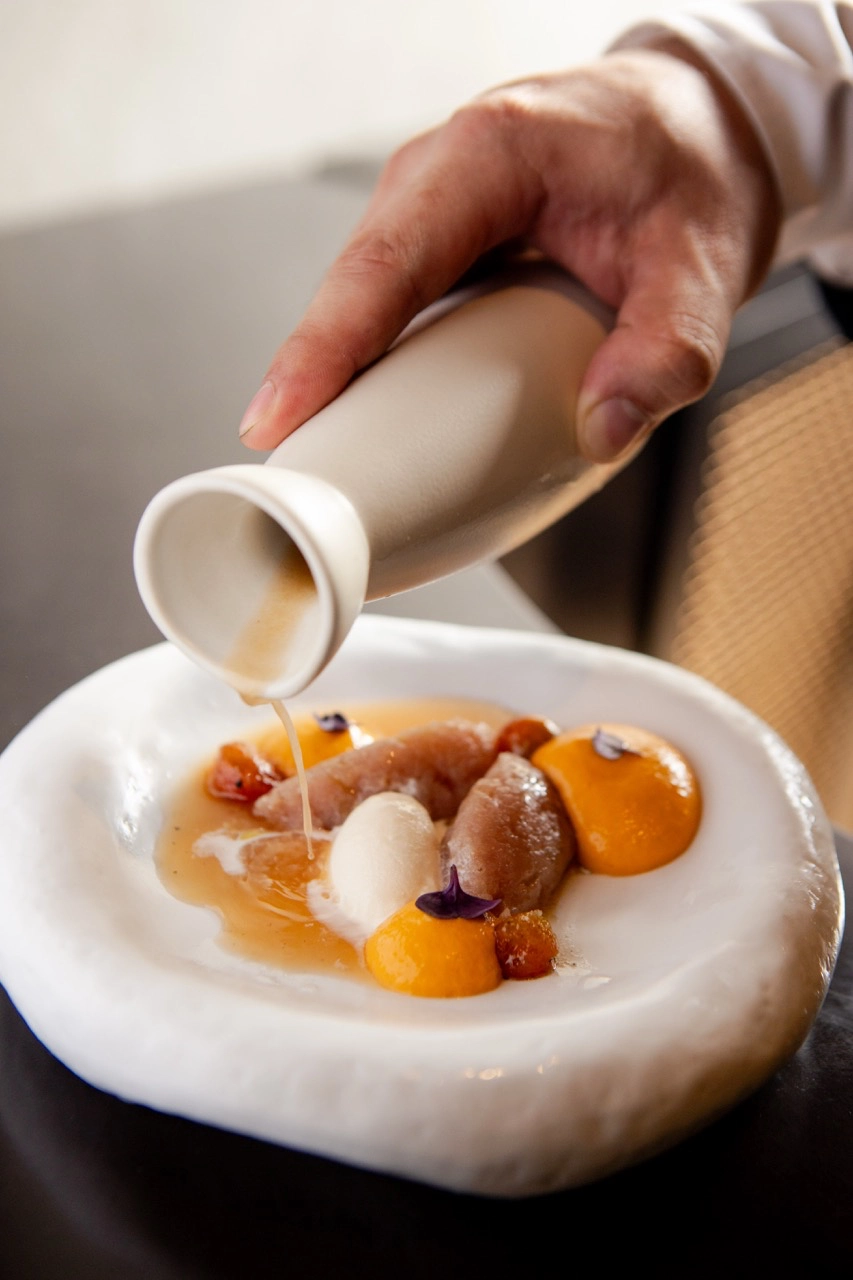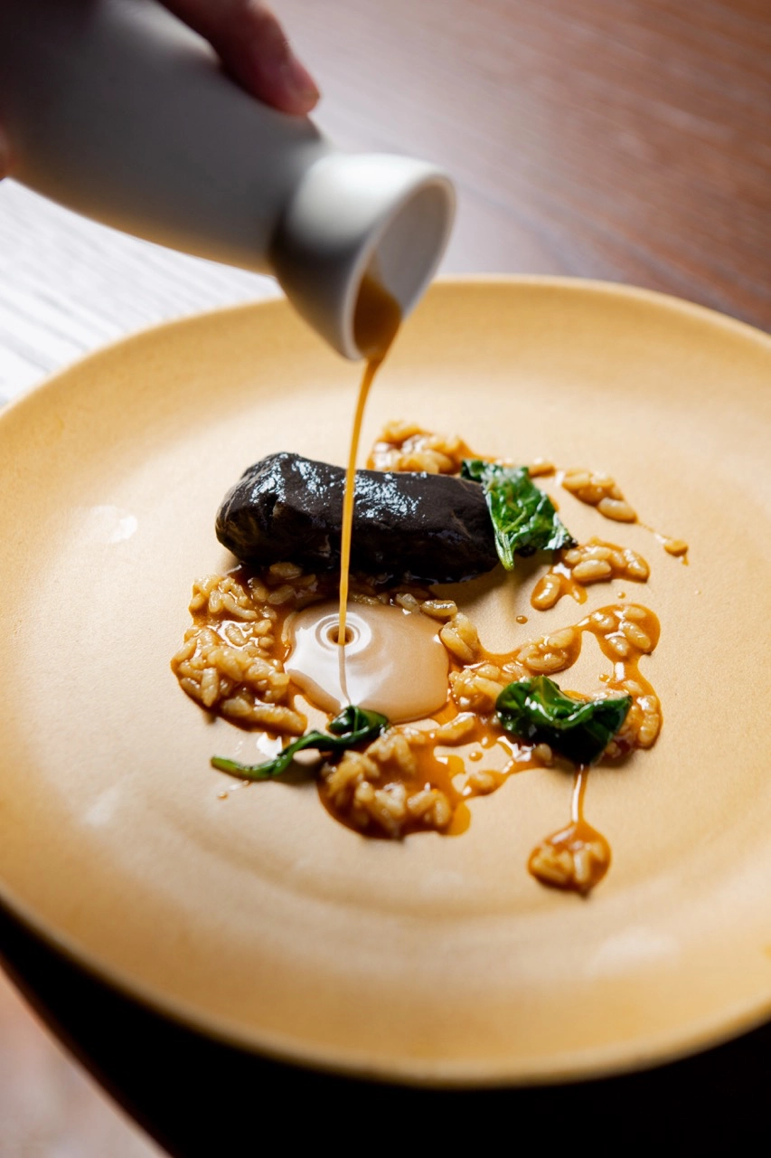 On the headier side and a personal favorite from the menu, the Caballa en Adobo con Gazpachuelo presented delightfully smoky mackerel preserved adobo-style, with a silky seafood soup emulsion that takes after the traditional gazpachuelo eaten by fishermen in Málaga.