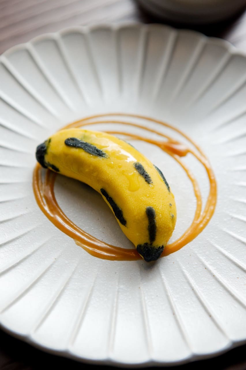 The desserts that ended the meal carried on Singular’s vision of translating tradition and heritage into more modern, unconventional forms. The Plátano de Canarias was a nod to the Canary Islands, a part of Spain away from the peninsula rife with bright yellow bananas. The dessert was, charmingly, shaped just like its fruit, a shell with a filling of roasted fruit, rum, and corn that was pleasantly sweet without being cloying. Complementing this was the Chocolate con Pedro Ximénez y Vinagre de Jerez: a chocolate pastry treat with Pedro Ximénez and sherry vinegar that blends sugar and salt into one elegant bite.