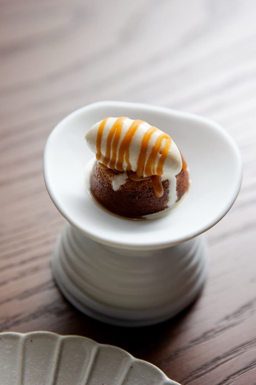 Ending the savory portion of the meal was the Cerdo en Orza con Berza Gaditana. Based on winter cooking traditions that required simple yet hearty meals, where pork was once preserved in large clay pots called orza and slow-cooked in its own fat, the dish pairs chunks of this meat with the Cadiz version of cocido: a warm broth of chickpeas and vegetables. The dish is finished off with small, pork-filled dumplings that do a great job of soaking up all the soup, lending a burst of flavor with every bite.