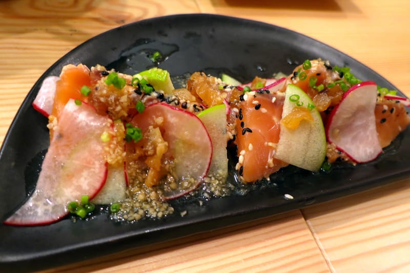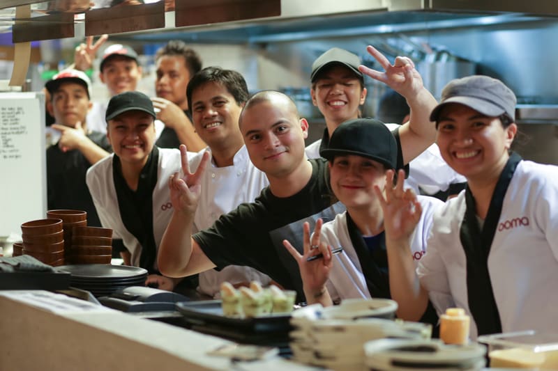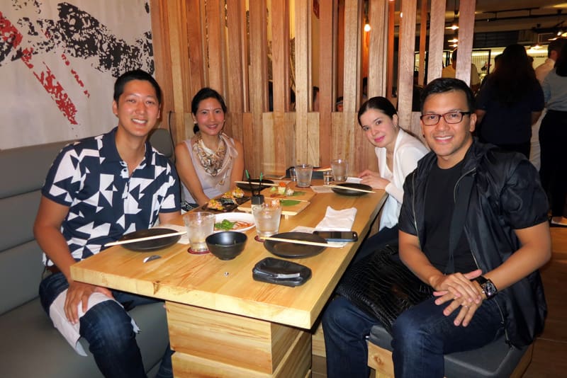 Known for creating innovative degustation Japanese dishes, Chef Bruce Ricketts of Mecha Uma fame prepared a sumptuous meal comprised of signature dishes such as Salmon Tataki, Ooma Taco-Maki, O-Gyoza, Hanger Steak, House Chahan, Corn & Oyester Kaki Age, Tori Kara-Age and Uni Udon for the opening of a casual yet chic Japanese dining spot OOMA at the SM Mega Fashion Hall. Owners of the new establishment Abba Napa, Eli Antonio and Jon Syjuco aka The Moment Group, welcomed friends—most of whom are Manila’s young and hip foodies—to their latest food venture while catching up to bottomless servings of sake.