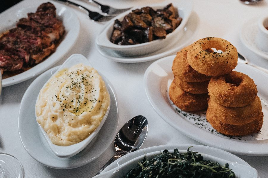 For those who opt for fish, there’s the Seared Ahi-Tuna and Sizzlin’ Blue Crab Cakes. And for the vegetarian option, the Ruth’s Chop salad incorporates lettuce, spinach, radicchio, onions, and mushrooms. Although the salad originally comes with bacon, ask for the bits to be served on the side for your companions to enjoy.