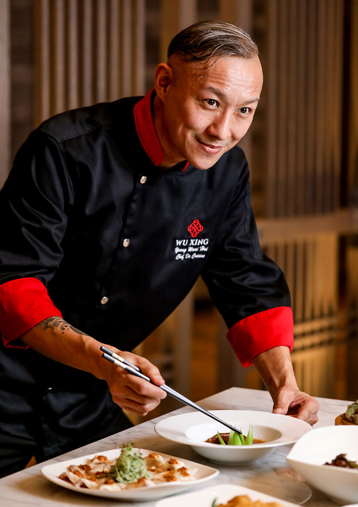 He paid extraordinary attention to detail in developing the menu for Wu Xing, traveling across China to draw from the best regional styles. “We tried the different and popular dishes of Beijing, Shanghai, Sichuan and Hong Kong, and got the best of them in developing the menu for Wu Xing,” Yeung says.