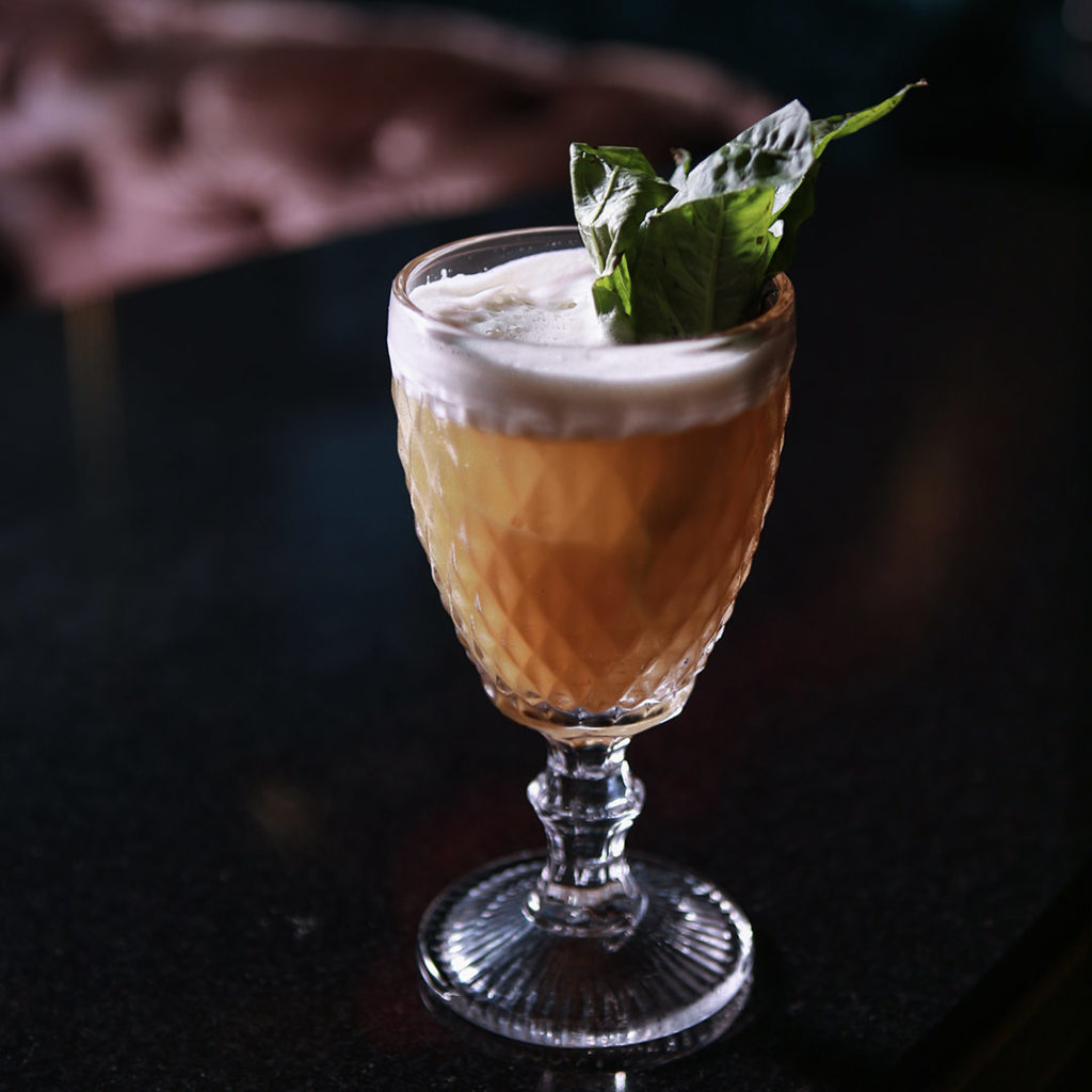 Fresh and herbaceous in taste, this cocktail manifests the wild nature of the Steven Spielberg classic. Made with basil infused Hine VSOP, you get that green herby taste instantly. The basil is balanced with the sweet sharpness of pineapple and lemon juice to freshen up the drink with an egg to add viscosity in every sip.