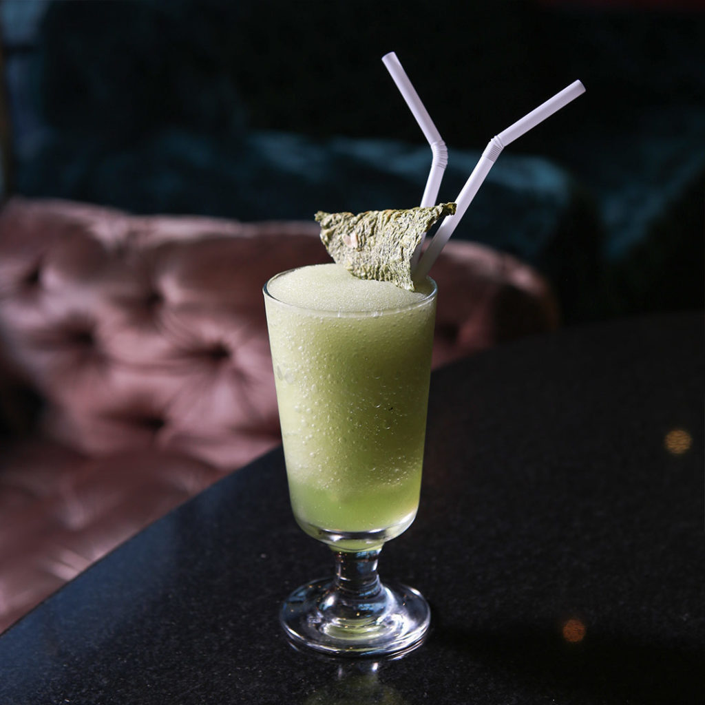 Reflecting its namesake film’s light tone and green hues, The Mask is a refreshing cocktail that gives the cooling taste of cucumber juice. With lime infused Ketel One vodka as a base you get a touch of tart sweetness from green apple syrup and some added lightness with a mix of Sauvignon Blanc. For that green finish, it’s topped with a small strip of dehydrated cucumber pulp.