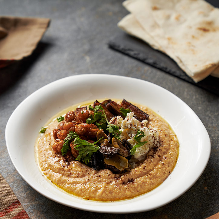 Next come two starters that are good to share with friends. Their pungent and saucy Ginger Garlic Squid is a flavorful dish that gets extra meat with a topping of pork floss. The combined deep pungency of garlic and ginger brightens up the squid which also pairs well with tequila-based drink like a Paloma. In contrast, their smooth and creamy hummus is a deep savory dip that comes with pita bread to carry it. Not one to stay plain with their dishes, ‘Yes, Please!’ goes in with extra flavor with added fried chickpeas, olives, kesong puti, and eggplant relish.