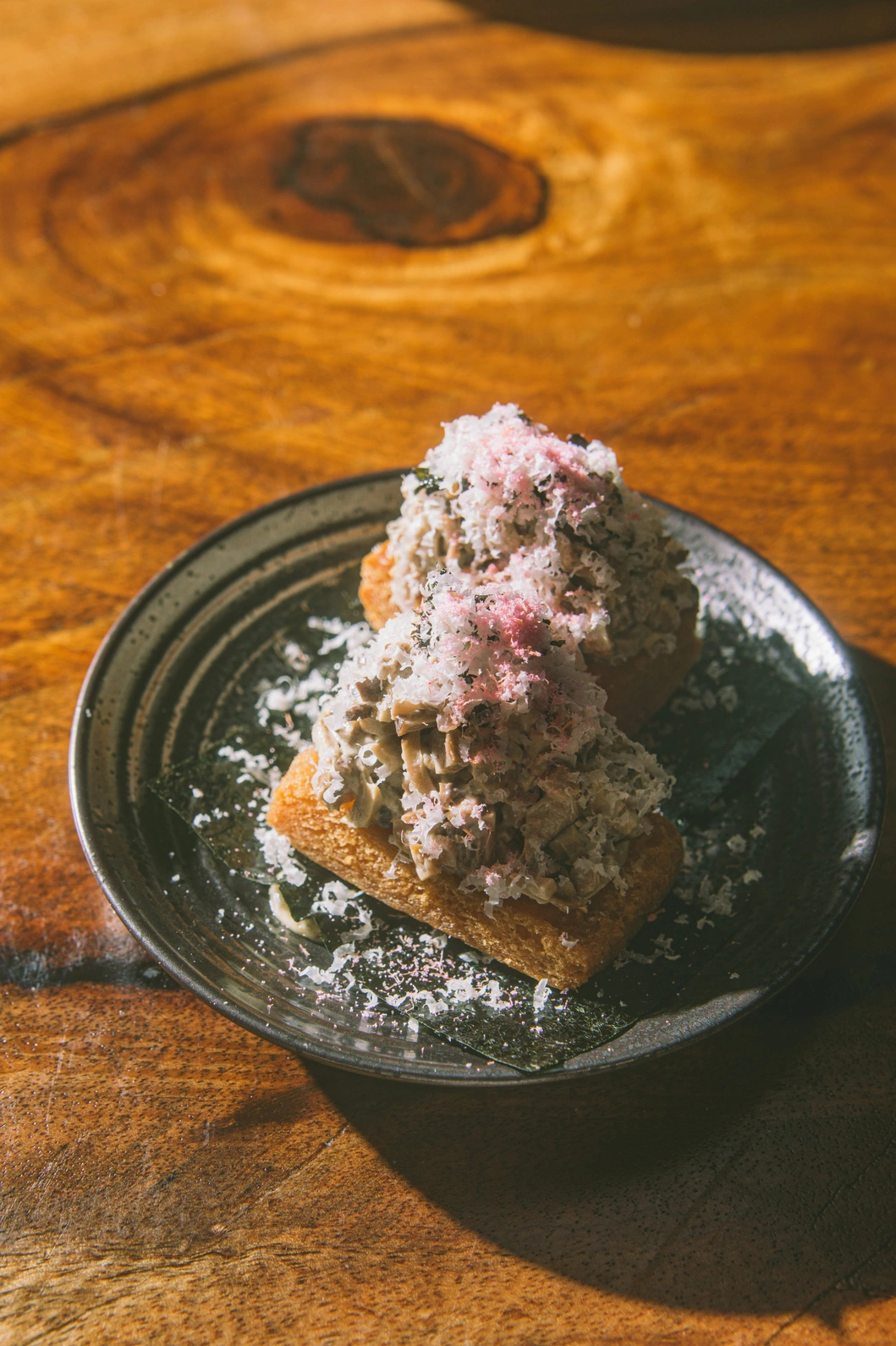 There’s something deeply comforting about Chef Young Sook Lee’s food. It’s familiar yet elevated, nostalgic but never basic. Her take on japchae—a dish that is actually reserved for special occasions in Korea—was a standout. Stir-fried glass noodles topped with her signature ingredient—mushrooms, pork loin, and an array of vegetables were lightly seasoned with soy sauce. Her japchae was a vibrant and textured plate that let each ingredient shine. She also put her twist on the universally loved Korean Fried Chicken. This chicken was glazed in a sweet-spicy gochujang-ketchup mix, then plated with sautéed mushrooms, presenting a classic and comforting bite.