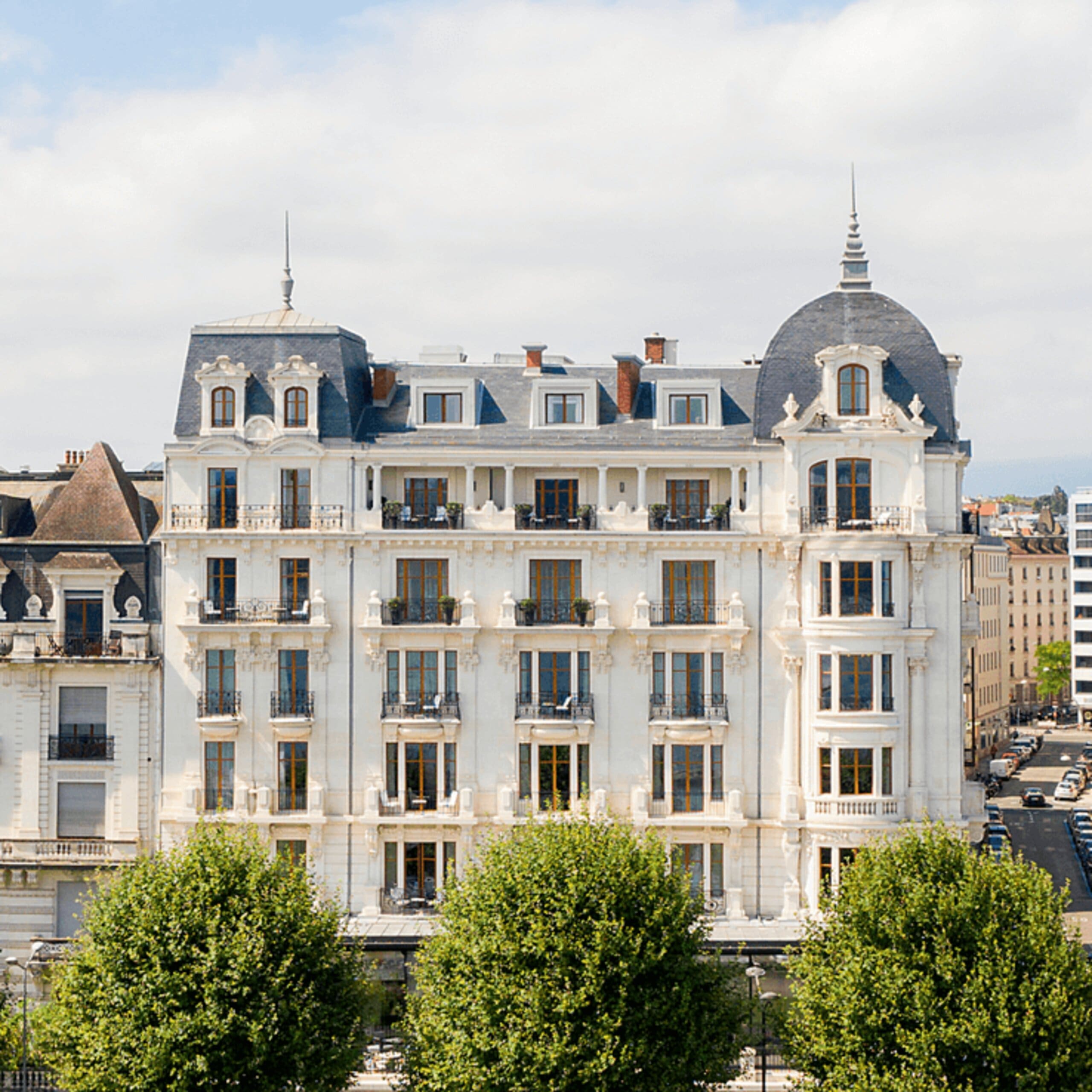 This hotel in Geneva boasts stunning post-Haussmann style architecture and classic decor that are seamlessly integrated with luxe amenities.