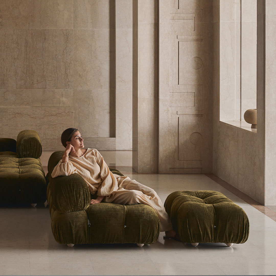 The Camaleonda owes its popularity to its distinct form and function; it’s a sofa intended to be an architectural element, capable of transforming the landscape of the interior space that it inhabits. “Camaleonda is a name that I invented in 1970 by mixing two words: the first is the name of an extraordinary animal, the chameleon (camaleonte in Italian), that can adapt to the environment around it, and the word ‘onda,’ wave, that indicates the curve of the sea and the desert. Both these words describe the shape and function of this sofa,” explained Mario Bellini.