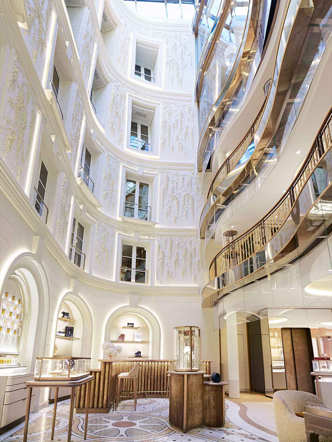 Moinard Bétaille, long-term collaborator of Cartier, flaunts the starting floors of the new building from the ground level to the second with a high sense of space generosity, allowing its valued guests’ free discovery and great exploration at the new Maison.