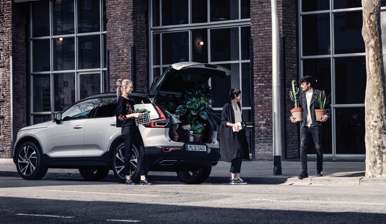The load compartment serves a surprising amount of storage space that could fit your life. It can comfortably fit two large pieces of luggage. The XC40 supports a busy life in the city. If your hands are full, the power-operated tailgate is there to assist. You can easily move your foot under the rear bumper to automatically open the back door. The backseats can easily be folded with a touch of a button at the back, for a whole flat surface space for even more storage.