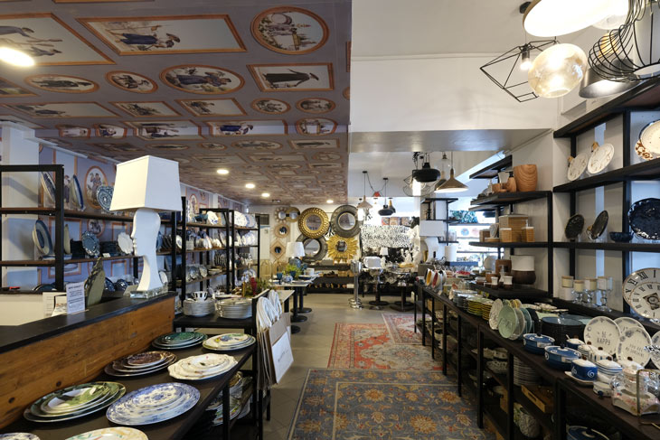 She say there is a mish mash of themes and motifs to cater to every home and lifestyle in her new store, which she built with the help of interior designer Chat Fores. Ongpauco-Tiu says that Fores wanted to showcase the variety by way of juxtaposition. Area rugs are mixed on top of each other while porcelain jars of different colors and prints are grouped.