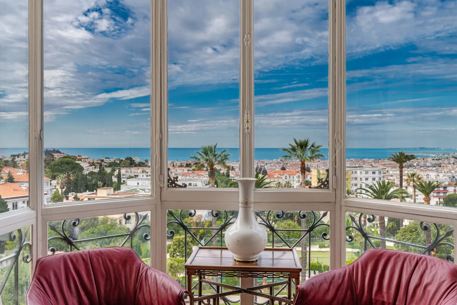 Located in the lavish neighborhood of Cimiez in Nice, the apartment boasts Belle Époque interiors, two bedrooms, and four bathrooms. It measures approximately 165 square meters and has four balconies that offer “a panoramic view of the city of Nice, the sea, and the Bay of Angels,” according to its official listing description.