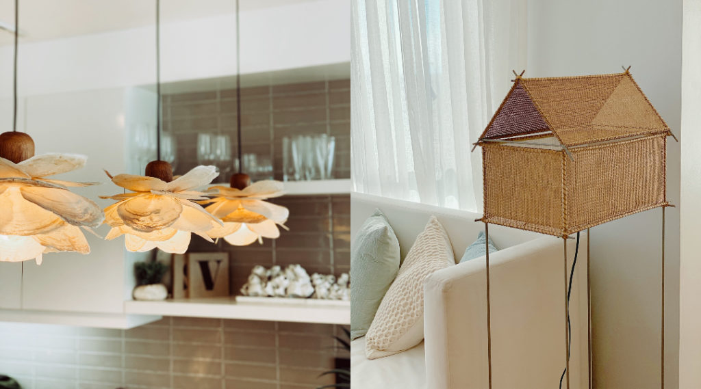As a beach house, Vito naturally thought of reflecting the sea through the interiors. His favorite designer, Milo Naval, designed the hanging capiz lamps in his kitchen. As for the floor lamps, it came from his BAJAU collection back in 2013, reminiscent of the stilt houses of the ethnic tribe in the country. The choice in incorporating details like these allows the penthouse to stay true to its sea-dwelling identity.