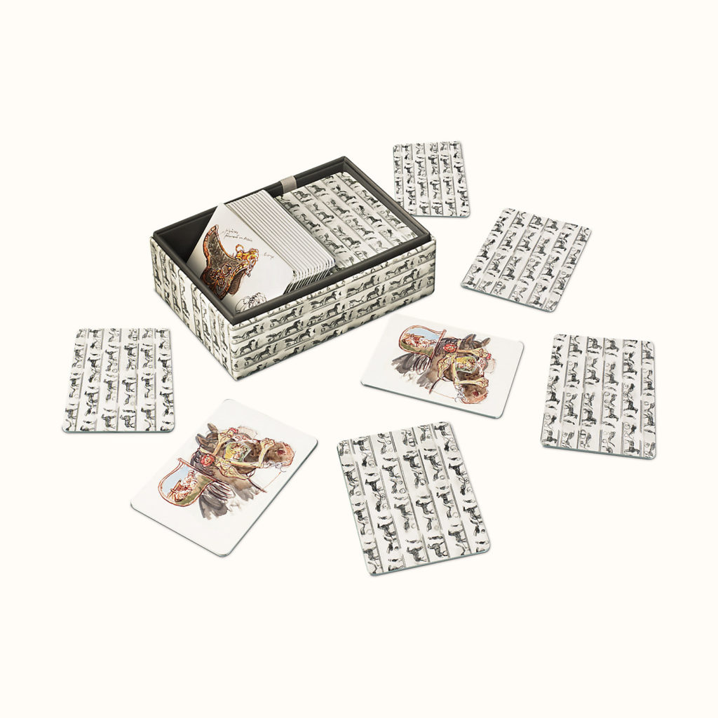 Made in France, this simple yet entertaining memory game features beautiful ornate drawings from the Emile Hermès Collection on silver-edged playing cards. Priced at $270 USD, it makes for a charming family gift.
