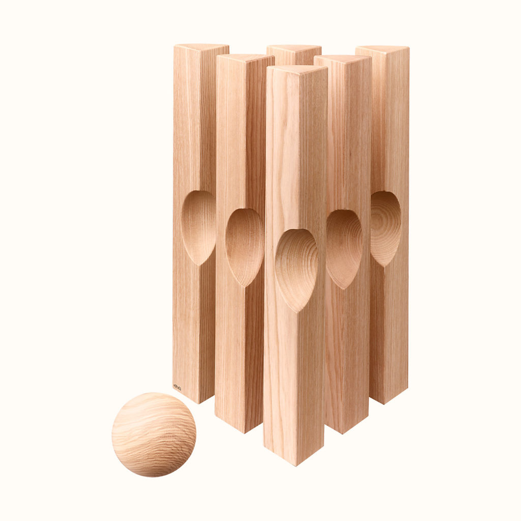 It is what you expect it is—Hermès takes the basic design of the pick up sticks game and adds an equestrian twist. Priced at $1320 USD, the tinted sycamore sticks takes its colors and patterns from show jumping obstacles, making for a more vibrant and difficult game.