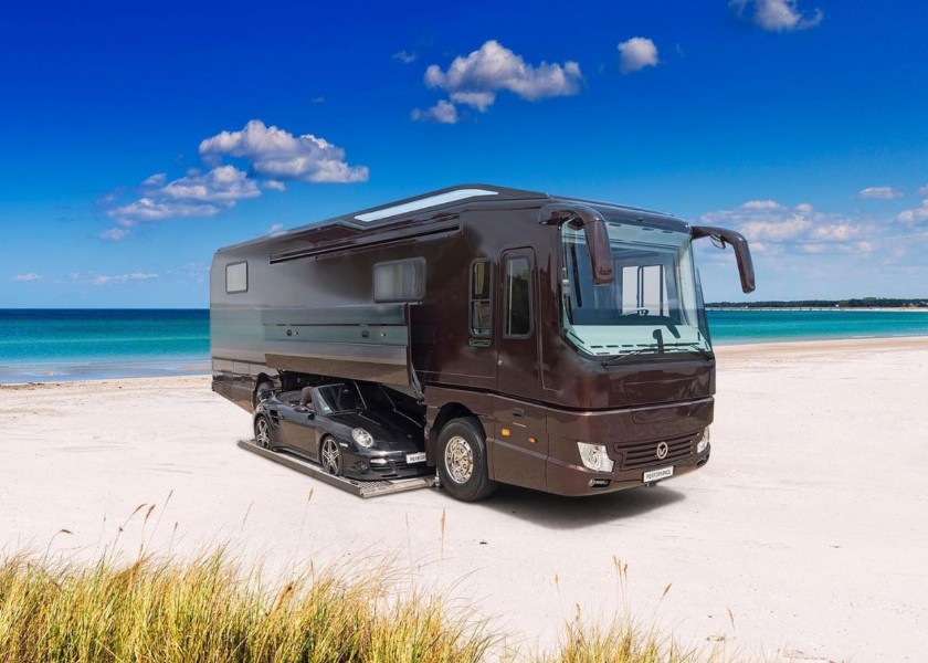 With a lithium battery band, a 2,000 watts rooftop solar panel, spacious cargo, and many customization options—the luxury motorhome’s price tag can reach $7.7 million even without the Bugatti.