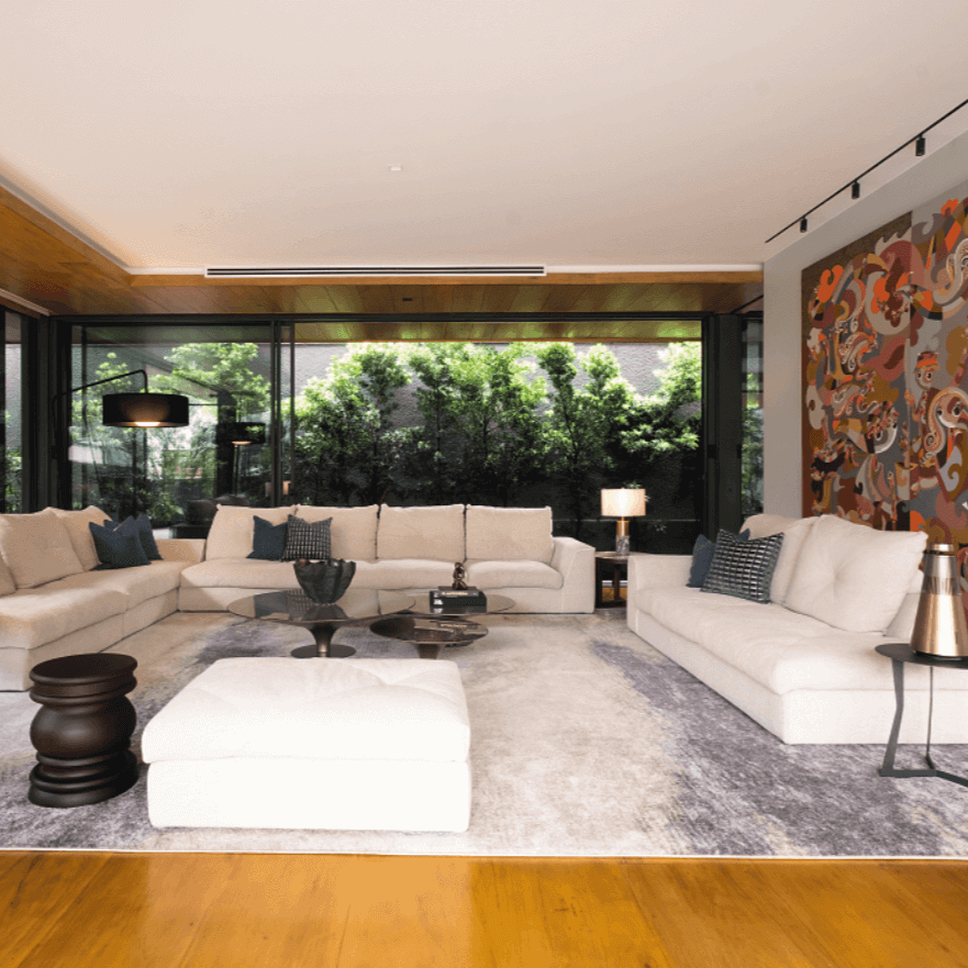 This home designed by a renowned architect serves as a calming haven in the heart of the city with its contemporary design, warm interiors, and thoughtful landscaping.