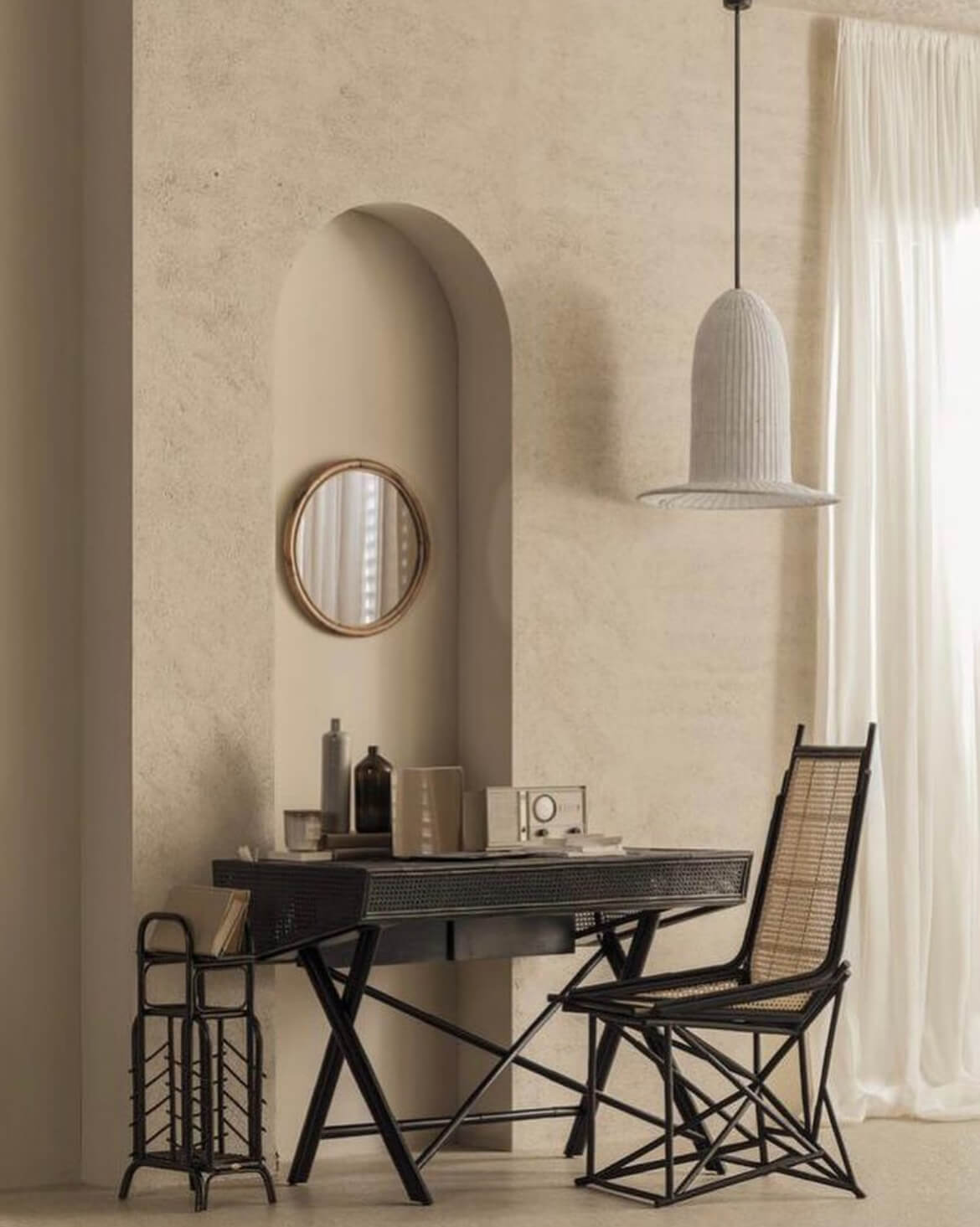 They specialize in natural materials like tropical woods, fiber and grass weaves, rattan, and bamboo. They also use metal, leather, bone, veneers, and synthetic weaves.