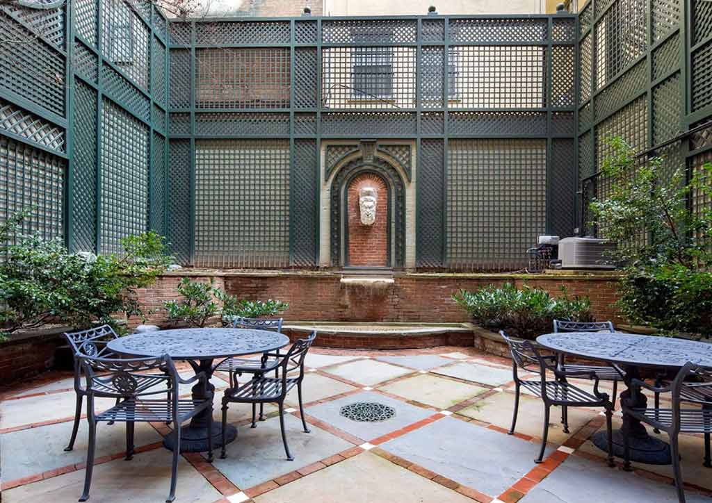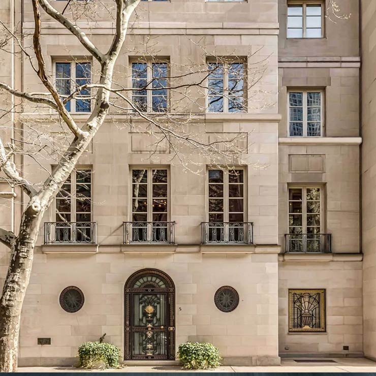 “This stately, spacious 35 foot wide Limestone Mansion sited on a 35- by 100-foot lot has approximately 14,175 interior square feet on six floors with 3,025 exterior sq. ft. of magical trellised Garden overlooked by a rear Balcony which runs the full width of the house. A Rooftop Terrace with Gazebo overlooks Fifth and Madison,” the description continues.
