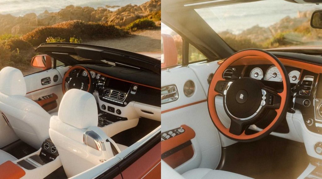 The four vehicles on display feature colors like Galilea Blue, Burnout Grey, and Iced Gunmetal. Paint specialists of the luxury brand showcased iced finish for this collection. It is one of the most popular innovations in the automotive industry. The subtle finish on the car provides an effect of a solid color yet has an elegant shine. The Ghost wears a Light Green Solid to represent the rebirth of flora. A Coral Solid color covers The Dawn, an attractive convertible. The last one, Wraith, wears a Semaphore Yellow reminiscent of the sunrays. Rolls Royce has been doing these color innovations, building finishes using silver, gold, and diamonds for bespoke commissions.