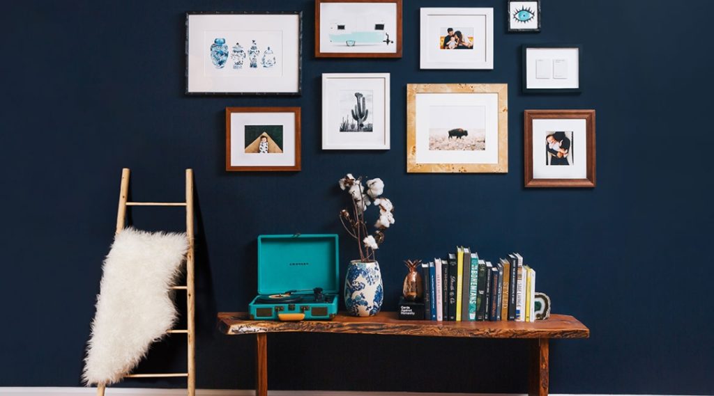 If you want to be eclectic, you can have the works framed in creative shapes. In this way, you wouldn’t have to concern yourself much over the strict alignment. Apart from this, you are certain to add youthful energy to your gallery wall.