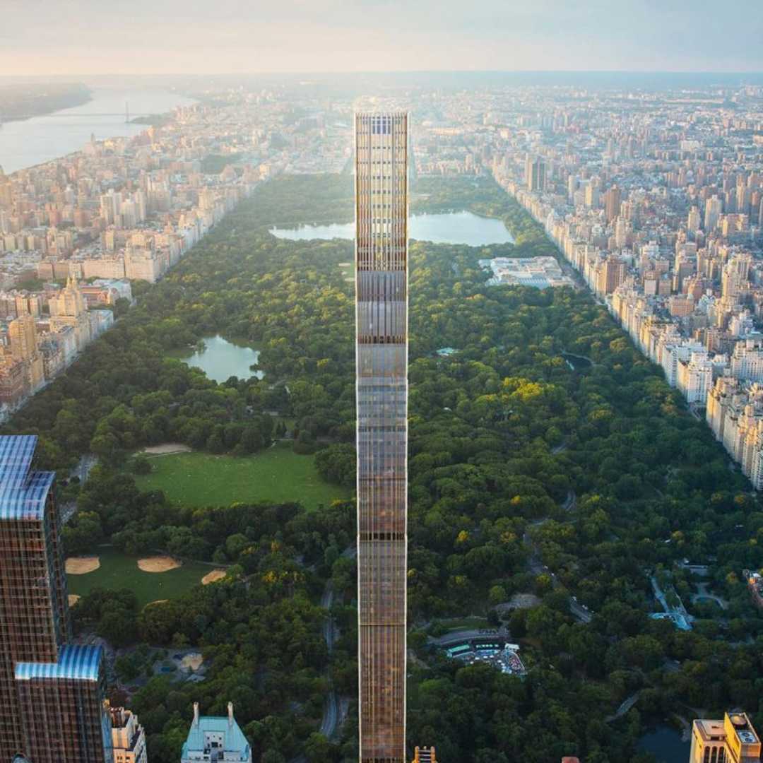 Steinway Tower divides Central Park in half with its perfectly symmetrical location akin to the urban landmark.