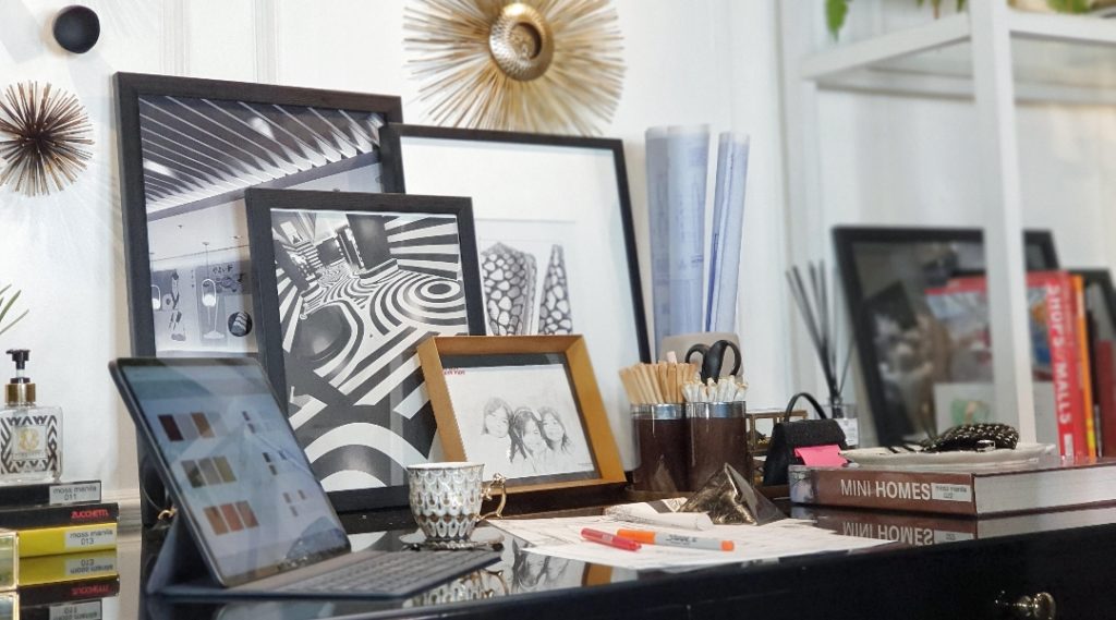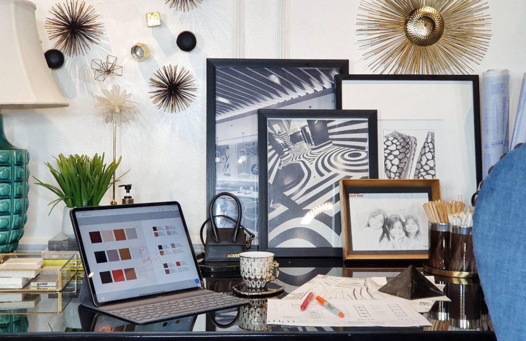 For a designer like Cyndi, one may expect her to have a well-curated workspace. True enough, her desk reflects her theme of having “well-edited, not over-the-top and understated with subtle luxury.” She may be versatile as her style continues to evolve throughout the years, but describes it as “an adaptation of different period styles but modernizing it with cleaner, more streamlined silhouettes.”