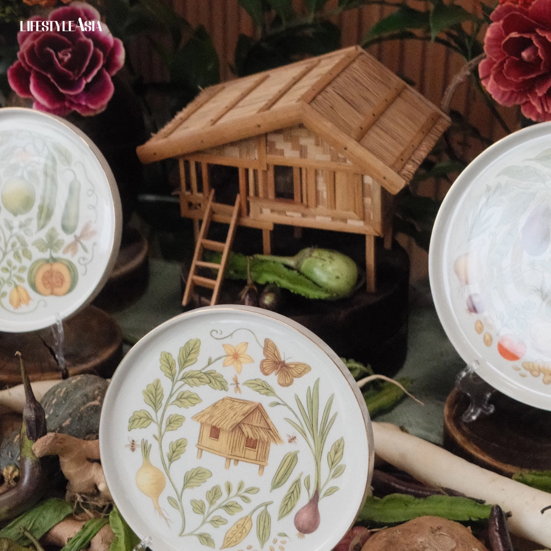 The collaboration is brought to life in two formats: a grand serving platter finely illustrating the vegetables named in the song, and a four-piece dinner set. Each plate in the four-piece set sings a verse from “Bahay Kubo.” Rather than feeling decorative, the designs read like small, intentional tributes to the ingredients that shaped both the melody and the dish.