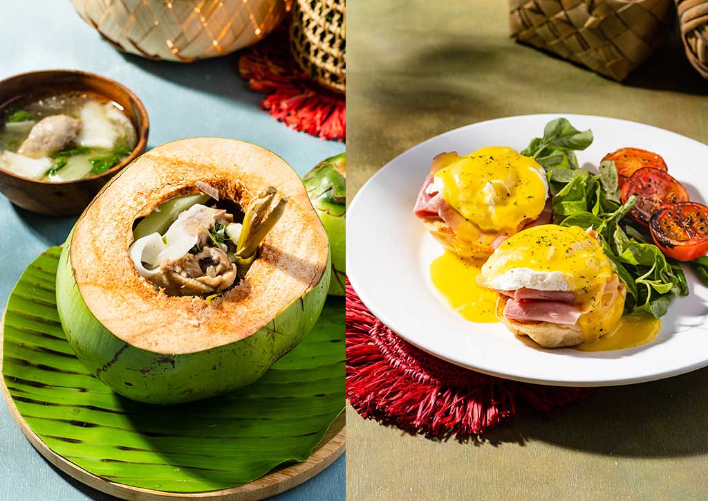 The homey restaurant and lounge area is adorned with classic chandeliers, tasteful bamboo chairs, tropical designs, and younger touches such as neon signs. Lihim’s staff are in Dennis Lustico, who created different motifs corresponding to their function.