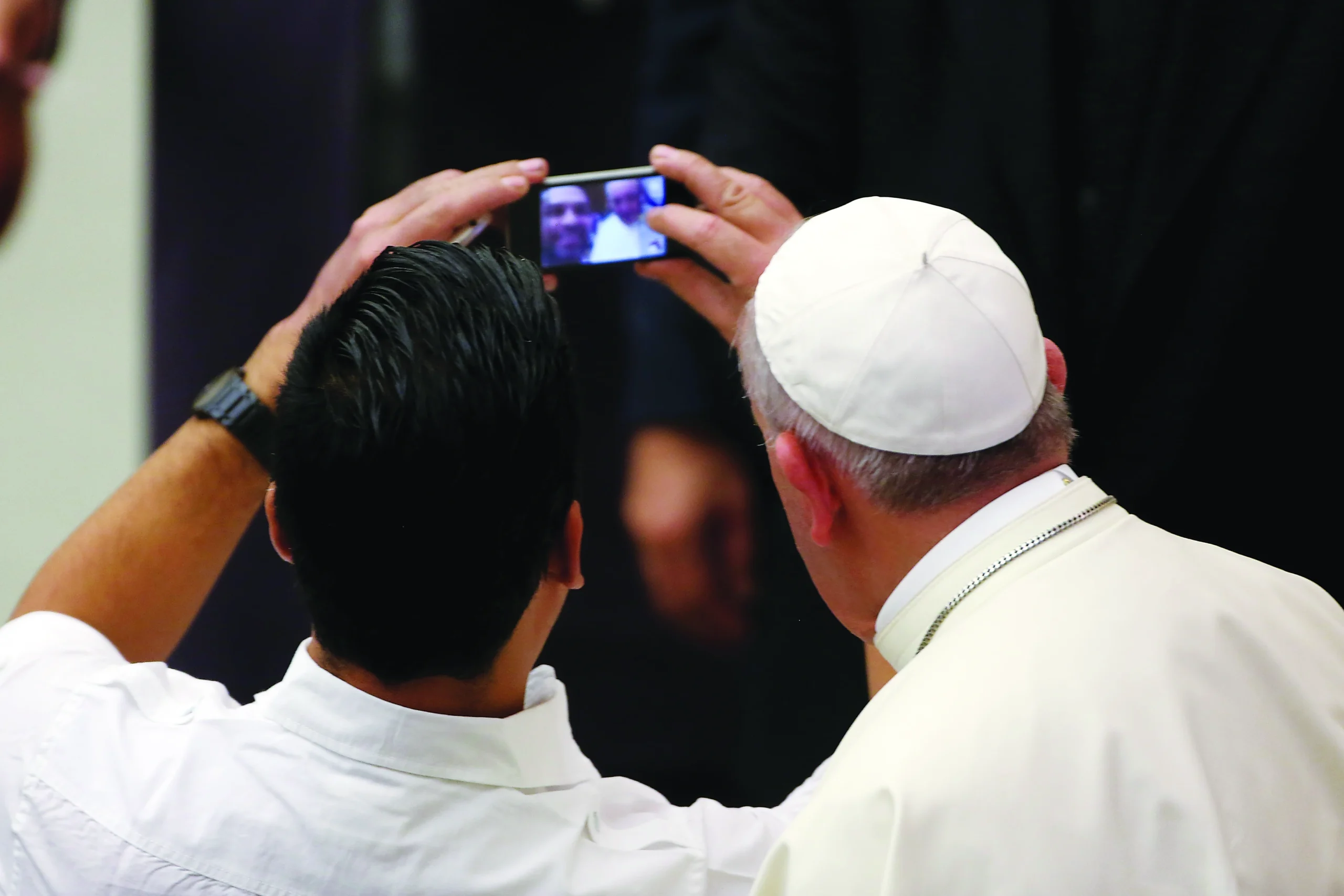 Pope Francis takes time out for a selfie with a faithful at the end of his weekly public audience in Vatican City