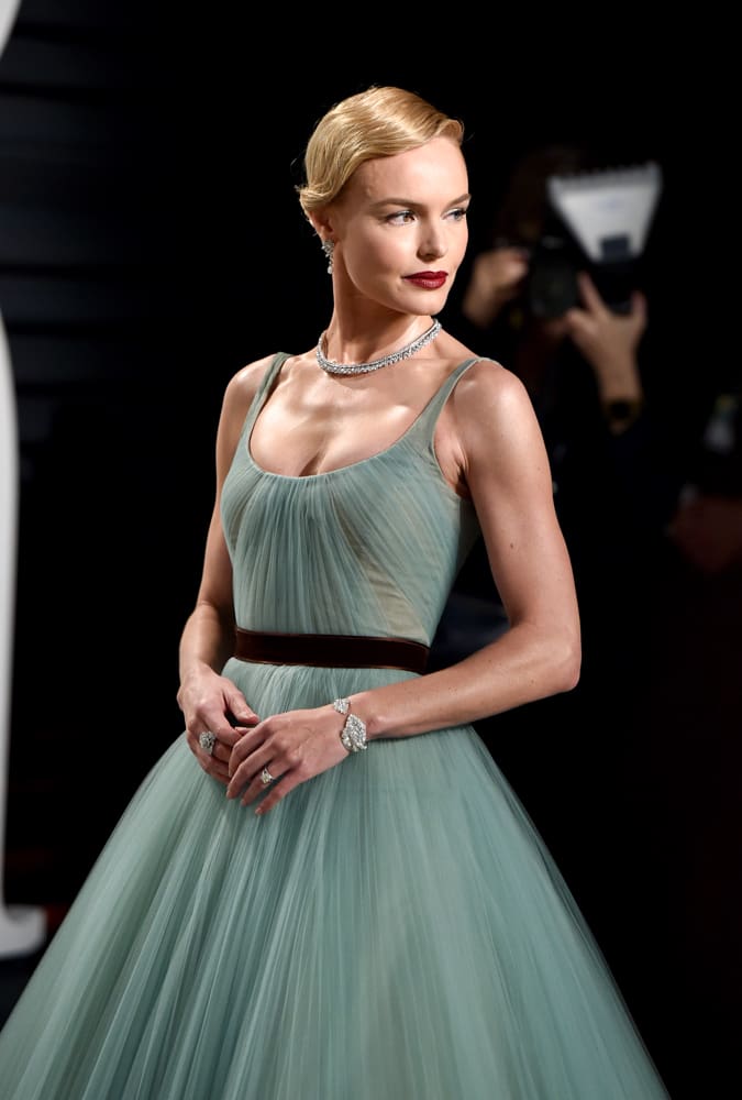 Arriving at the Vanity Fair Oscar party, Kate Bosworth looked every bit the princess in an Extremely Piaget high jewelry necklace and bracelet, Piaget Rose earrings and matching ring, all in 18-carat white gold set with diamonds. Also in attendance was Sam Heughan, wearing the Piaget Altiplano Skeleton in white gold. Model Shanina Shaik sparkled at the 25th annual Elton John AIDS Foundation Academy Awards party in the Limelight Garden Party necklace in 18-carat white gold and emeralds and Gem of Roses emerald ring to match her chic green gown.