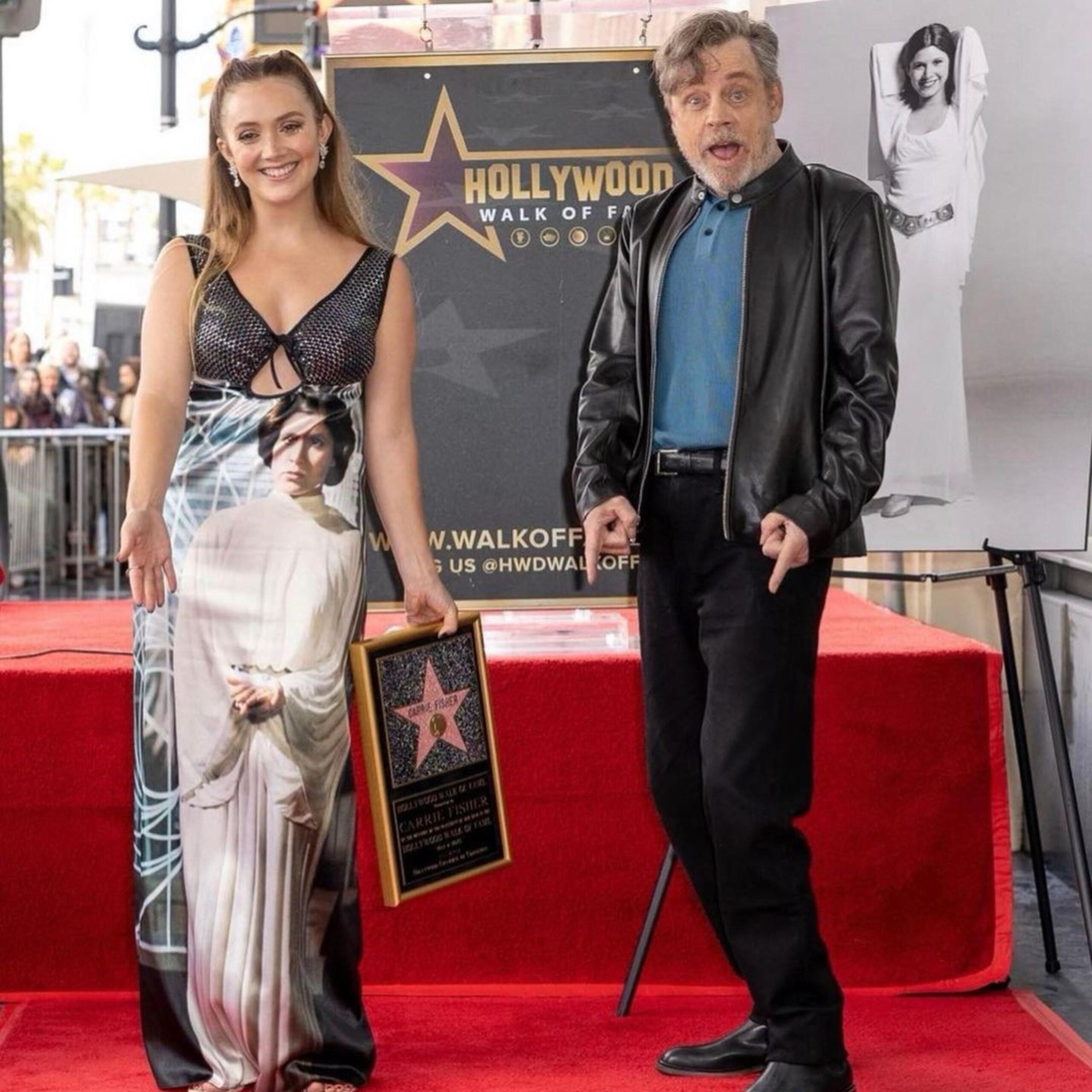 A star was unveiled on May the Fourth in honor of the late actress, with her daughter Billie Lourd and long-time friend Mark Hamill in attendance.