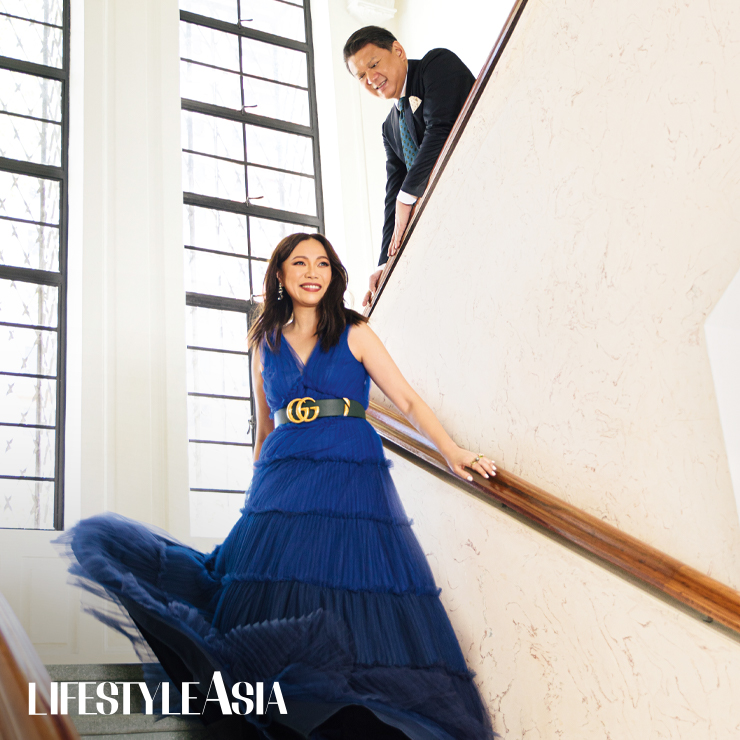 The three-hectare estate of Palacio de Memoria provided the perfect backdrop for this handsome pair of successful entrepreneurs, while the sunlit clouds drifting across a clear blue sky enhanced the scene. It was a relatively warm morning. The day’s dignified personages, Rikki and Beng Dee, visionaries behind Foodee Global Concepts, begin by inviting the entire Lifestyle Asia team to join them in a fantastic brunch feast set up by their catering team. On the buffet menu, was a variety of appetizing textures and flavors—among many things, a local take on paella that makes use of adobo rice, fried egg, and tapa; succulent steamed fish; huge servings of prawn thermidor; and a selection of sophisticated Pinoy delicacies for dessert. Inside the gentrified pre-war mansion amongst rare and exquisite antiquities, paintings, and objets d’arts, the conversation started over everyone’s growing fear of that morning’s biggest newsmaker, the coronavirus disease (COVID-19). The previous evening, tensions rose as the government prepared for a lockdown. Beng expresses her genuine sympathies to those who will be deeply affected by the huge impact of the necessary mandate. “A lot of employees reside outside Manila,” she states. Rikki shares his wife’s sentiments, explaining the ominous repercussions of such a move to the national economy and the general welfare of the country’s citizens. Every now and then, you’d see the couple talking to their team, checking on their situation, and offering sound advice. Even with a large empire such as theirs, the sense of belonging and the sincere compassion for the plight of the workforce gives the impression that the two regard their massive team as integral parts of their family.