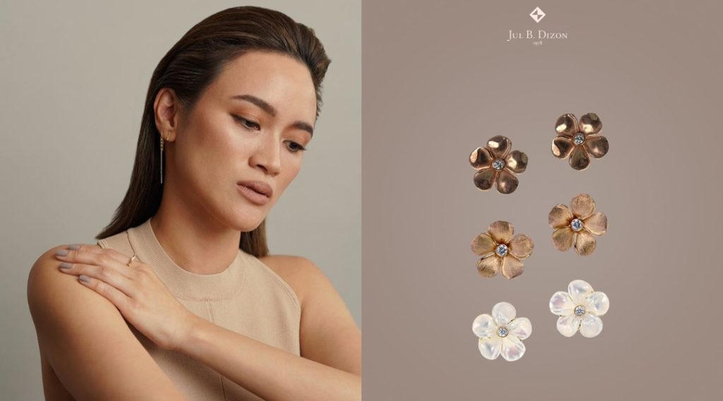 LEFT: _SKEWED_ collection with creative director Ria Prieto. LEFT: Kalachuchi collection in collaboration with Lucy Torres-Gomez. (Photos from Jul B. Dizon Jewelry)