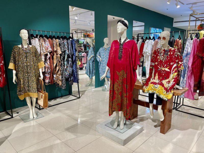 Kaftan One’s collections include pieces made from Indonesian silk batik, cotton with Indian embroidery, and fabric by Sri Lankan textile designer Darshi Keerthisena.