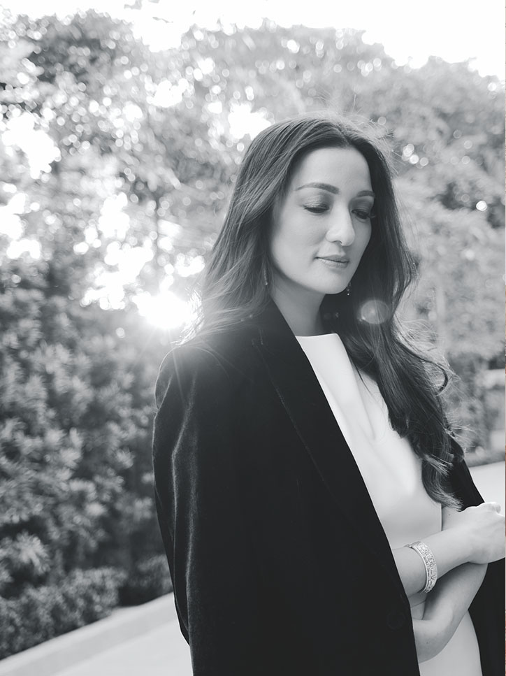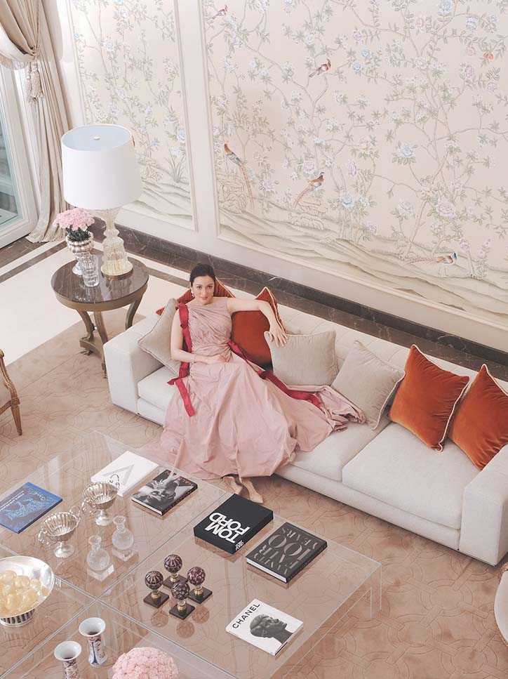 Shot in her stately home, Che Uy was the consummate host. The wife of Udenna Corp’s Dennis Uy, the mother of three welcomed Lifestyle Asia in her home. With de Gournay prints on the walls, statement art pieces and elegant coffee table books on display, these choices signified a look into the design sensibilities of Che. “My husband’s only request was a room with green in it,” she says, “because green is his favorite color.”