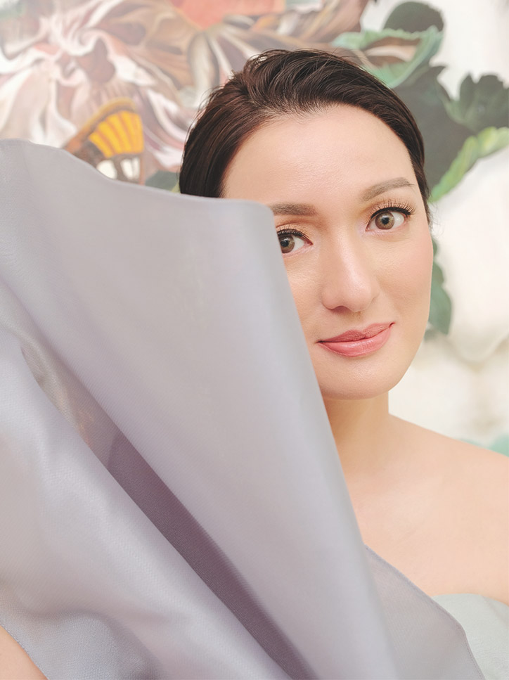 Muted pink asymmetric ruched gown with red ribbons by VANIA ROMOFF Inspired by Facebook COO Sheryl Sandberg, Che is aware that there are some who might think she only got her position through connections and her husband. “It has been both difficult yet rewarding. Being a woman in business, especially in more male-dominated industries, I have notbeen immune from discriminationbecause there are still men whounderestimate what women can do, even though sometimes, we do a better job than them,” she says. Confident in her worth and abilities, Che knows she wouldn’t have gotten to where she is if it weren’t for her own hard work.
