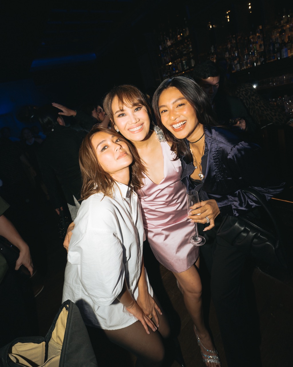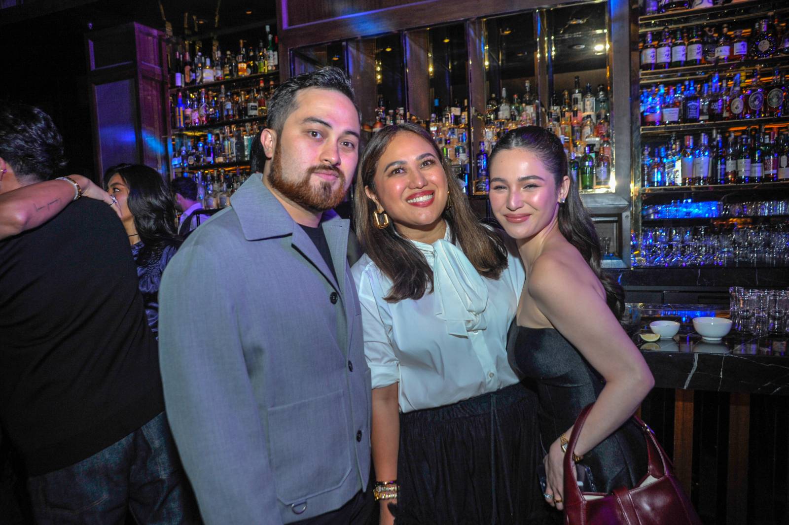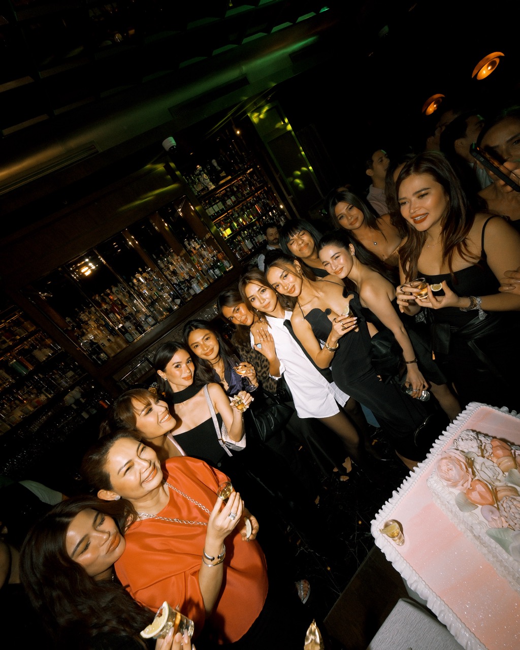 The Back Room, Shang at the Fort’s discreetly glamorous secret bar, was the perfect setting for the elegant yet cozy double celebration: Aivee Aguilar-Teo’s birthday and Aivee Clinic turning 15. She made a fashionable entrance, looking glam in a light pink satin Prada number, with her doting husband and business partner Dr Z Teo, and sweet daughter Keli in tow. Aivee certainly cut a youthful silhouette with the crystal-encrusted razor back—a subtle nod to 15 years in the industry— that fit her lean figure to a T.