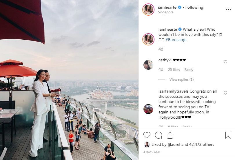 Heart Ongpauco Escudero looked chic while enjoying the breathtaking view of Singapore‘s skyscrapers.