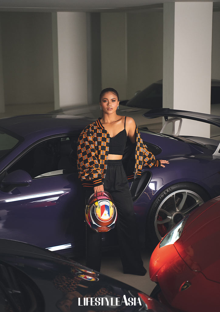 And while she is unmistakably gritty behind the wheel, Bianca is unafraid to express her femininity. She is aware that white clothes beautifully complement her morena complexion especially when she’s abroad, so she is famously partial to them. Her latest favorite is a white dress that she accessorized with a tiny Philippine flag pin and wore to after-race parties.