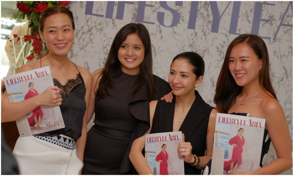 Marga Nograles, Camille Villar, Cat Arambulo, and Kidd Tan Dee receives copies of Lifestyle Asia’s July Edition. (Photographed by Miguel Abesamis)