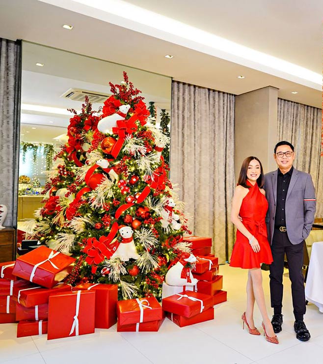 The Christmas tree in Vicki Belo’s home is very famous. Annually designed by Stephen Brown of Glitterville Studios, Brown and his team would make the trek to the Philippines to put up the tree for the Belo-Kho family. Due to travel and shipping restrictions over the last two years, Glitterville have not made it back.
