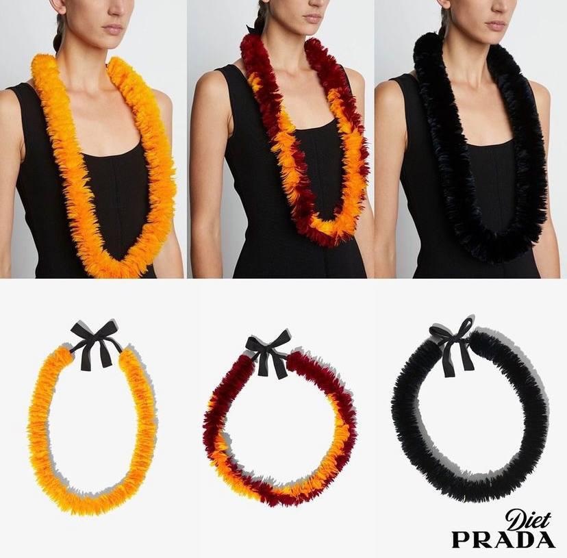 Three iterations made of feathers and black ribbons were offered for $1490. Upon its online release, the Hawaiian community on social media had some things to say.
