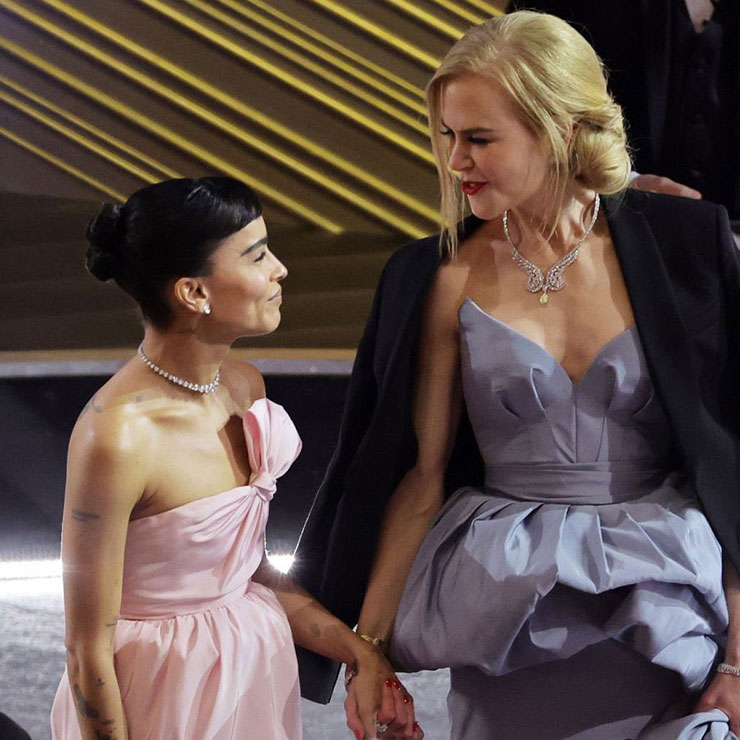 Kidman, nominated for Best Actress for her role as Lucille Ball in the biopic Being The Ricardos, and Kravitz, last seen as Catwoman in the latest iteration of The Batman, also have a more touching connection: after a contentious divorce with Tom Cruise, Kidman dated and was engaged to Kravitz’ father. You know him as Lenny: singer-songwriter and rock star.
