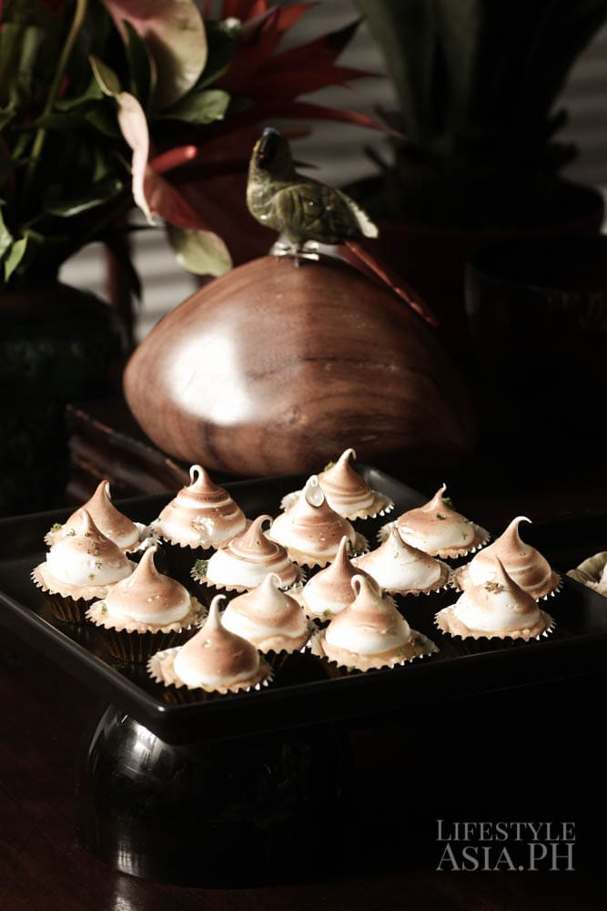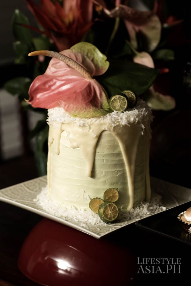 A tropical garden themed calamansi cake made of three layers of rum cake, calamansi marmalade filling and marshmallow icing